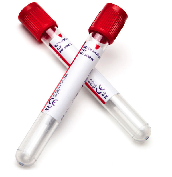 • Sérové zkumavky BD Vacutainer® jsou obvykle používány pro vyšetření séra v oblasti klinické biochemie a sérologie. Zkumavky jsou nabízeny v různých velikostech a mají červené uzávěry.